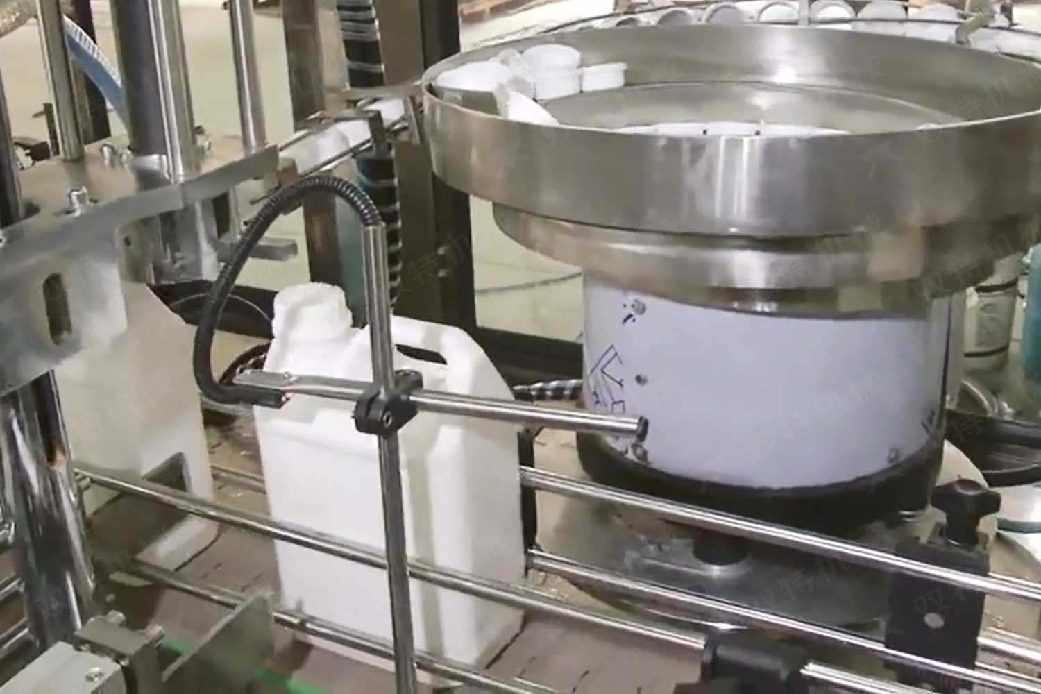 旋蓋機(jī)主要用于玻璃廣口瓶的三、四、六鐵蓋真空旋蓋,用兩根不同速度的皮帶壓瓶蓋,因兩根皮帶的速度不同,對(duì)蓋進(jìn)行搓蓋收緊達(dá)到旋蓋目的。在自動(dòng)上蓋之前對(duì)瓶口吹蒸汽加熱,吹掉冷空氣,換上高溫蒸汽,立即旋蓋,根據(jù)熱脹冷縮原理,蒸汽冷下來就自然形成了瓶內(nèi)真空,達(dá)到了真空旋蓋的目的。自動(dòng)旋蓋機(jī)可以和濃醬灌裝機(jī)、蜂蜜灌裝機(jī)、辣椒醬灌裝機(jī)組合在一起,形成一套全自動(dòng)灌裝設(shè)備,是現(xiàn)代調(diào)味品企業(yè)的得力幫手。